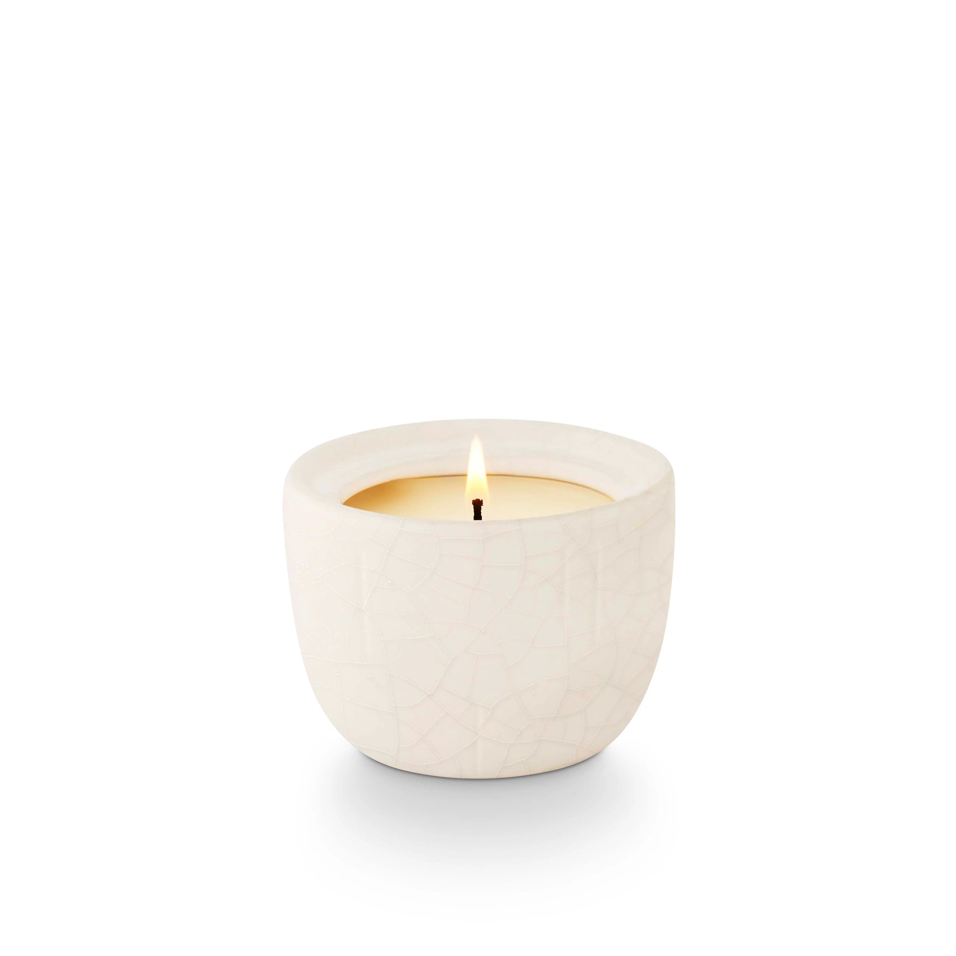 Glazed peach, creamy butter, and roasted chestnuts. Soft matte ceramic is contrasted with a shiny gold top for a gorgeous autumnal-shaped candle that doubles as a fall home decor piece.