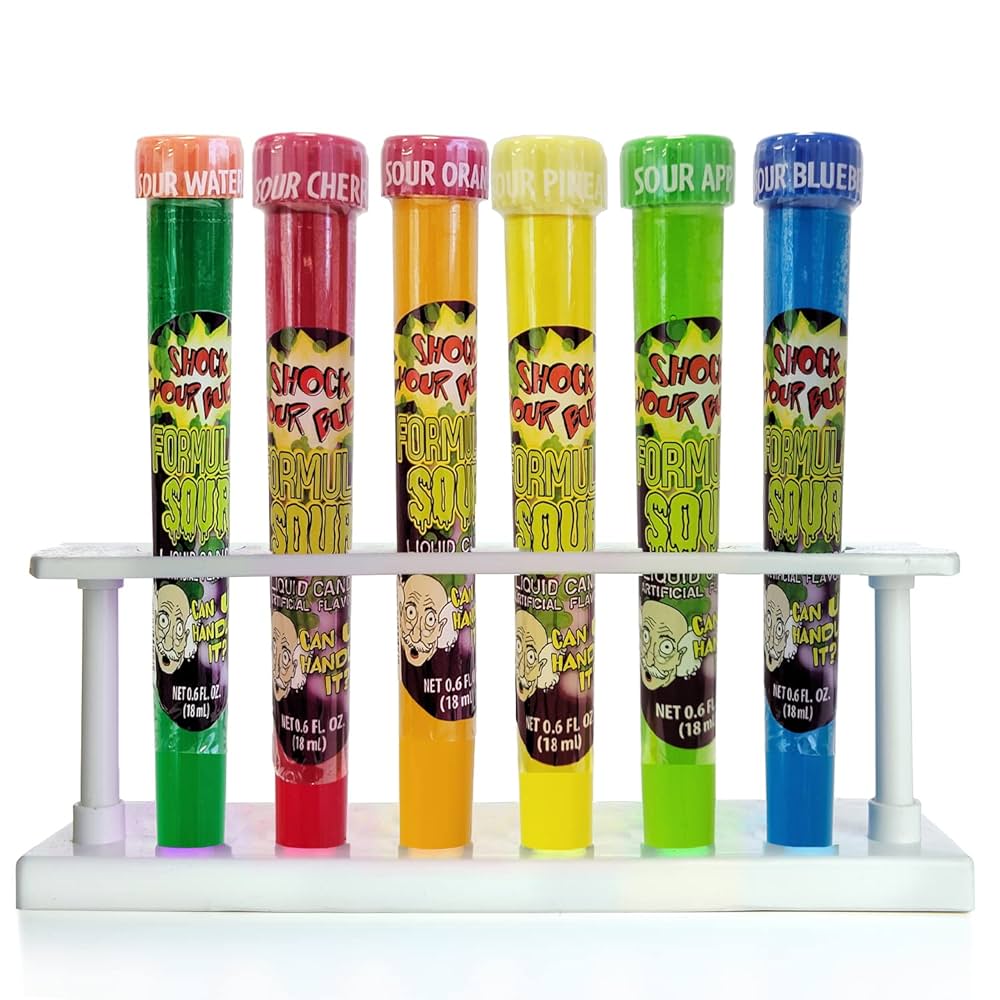 Formula Sour liquid candy test tubes offer you deliciously sour liquid candy to shock your taste buds.