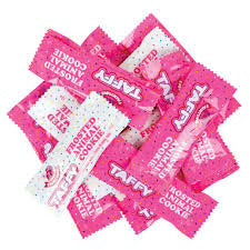 Transform your candy party into a frosted fun fest with Frosted Animal Cookie Taffy. Each wrapper hides speckled pink and white chewy taffy that captures the buttery sweetness of Frosted Animal Crackers. Get ready to taste the nostalgia!