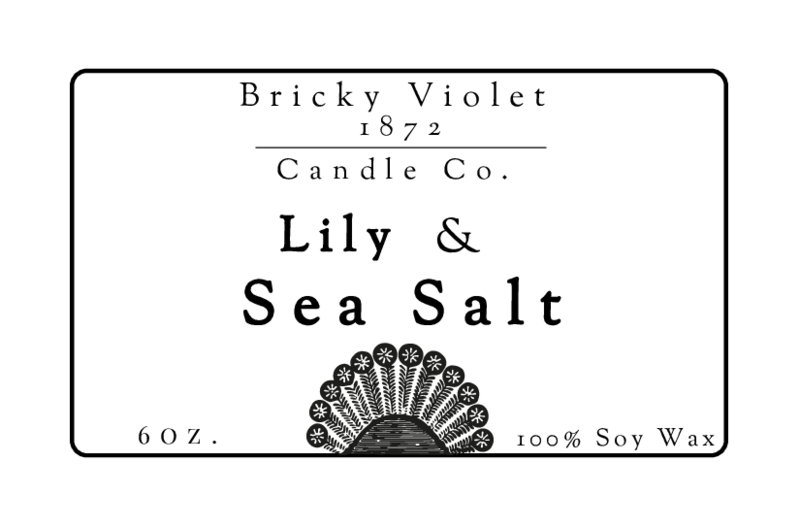 Bricky Violet 1872 - Lily & Sea Salt Candle. Our candles are a simple, 100% soy wax formula to freshen your rooms for a long-lasting fragrance!