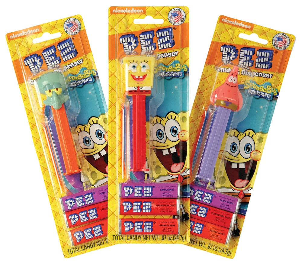 Spongebob Pez candy dispensers brings the world beneath the sea to life with these collectible SpongeBob Square Pants PEZ® candy roll dispensers. Featuring loveable characters from this Nickelodeon franchise and a delicious PEZ candy assortment including orange, grape, and strawberry PEZ candy refills.